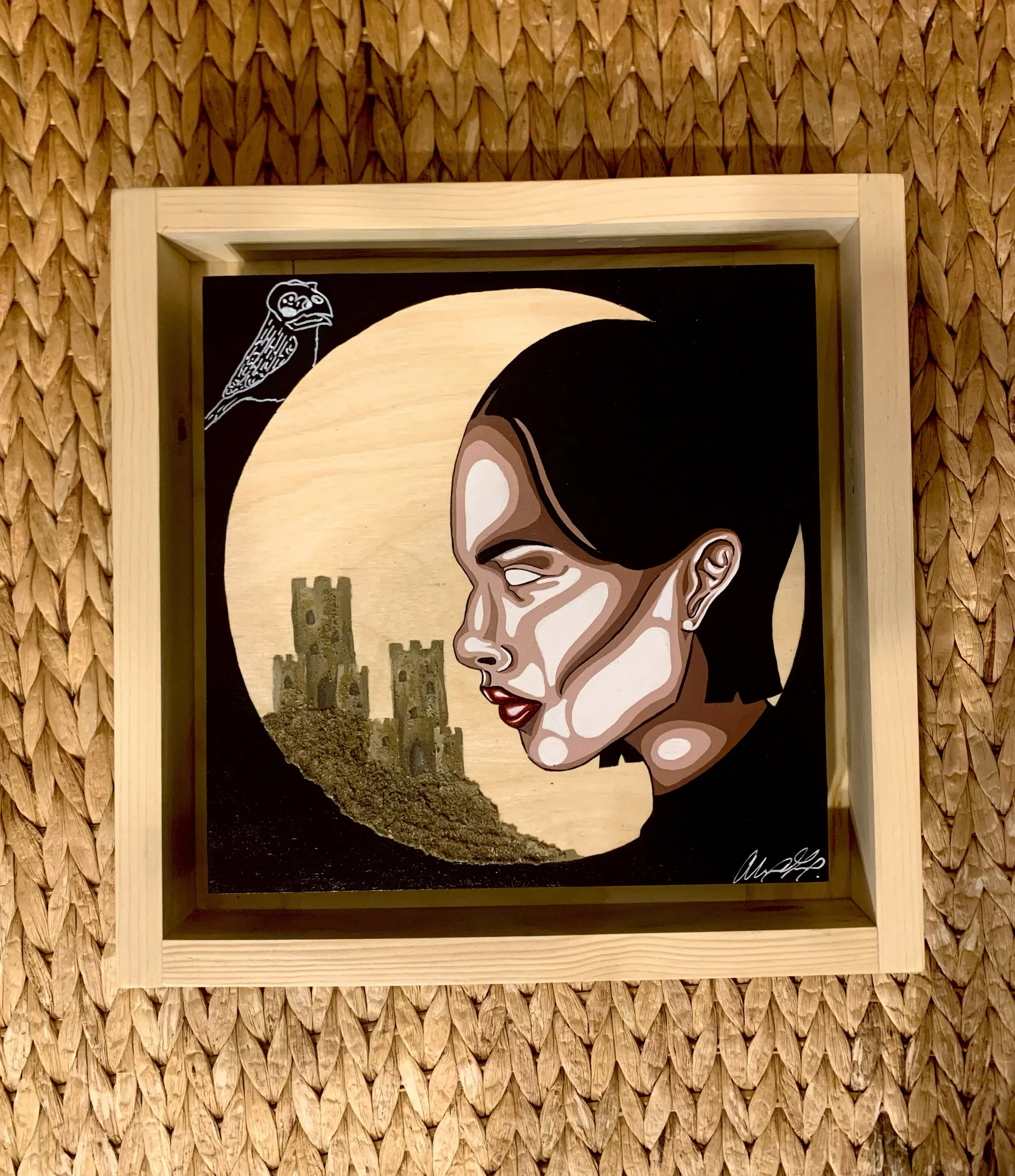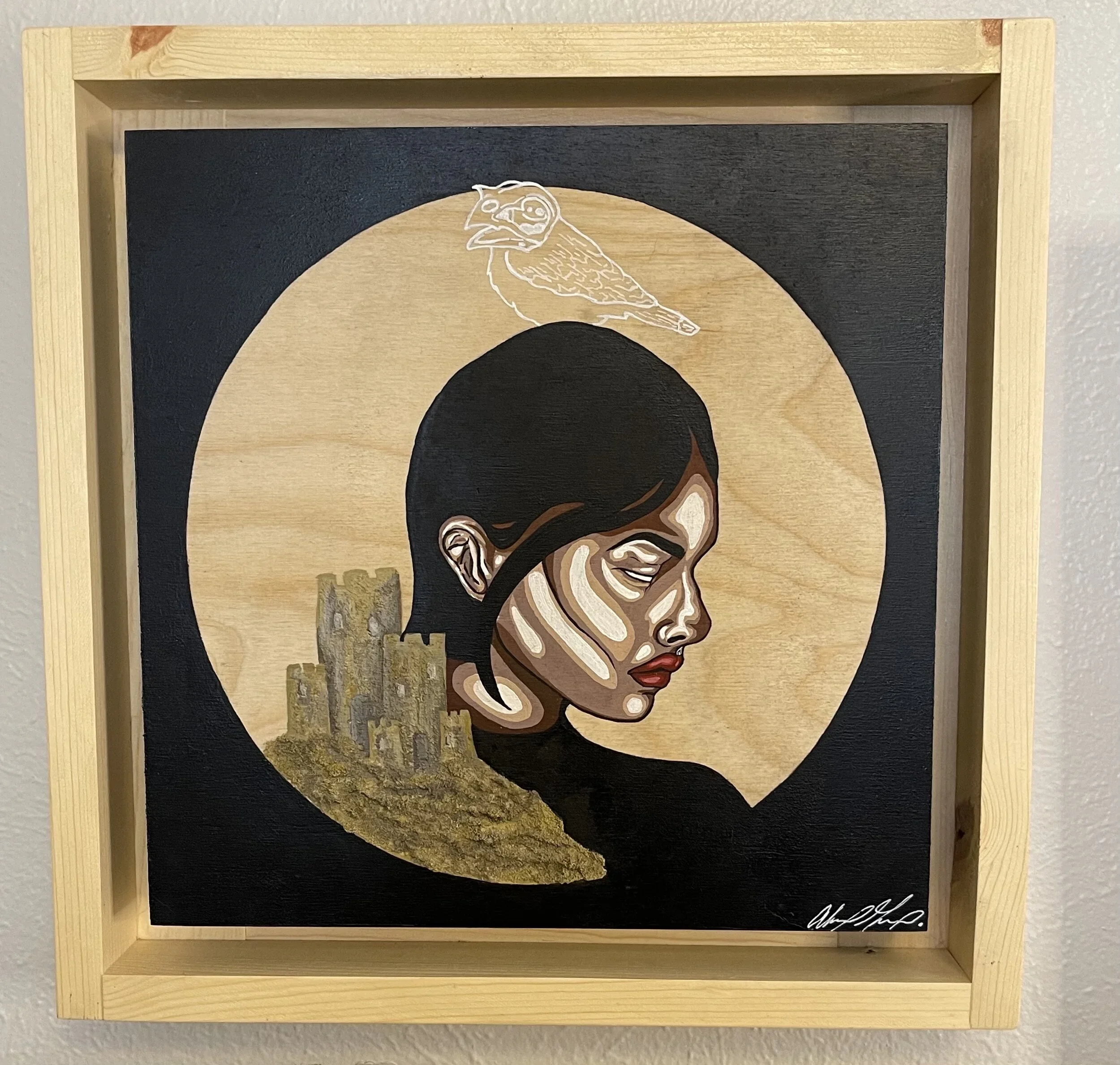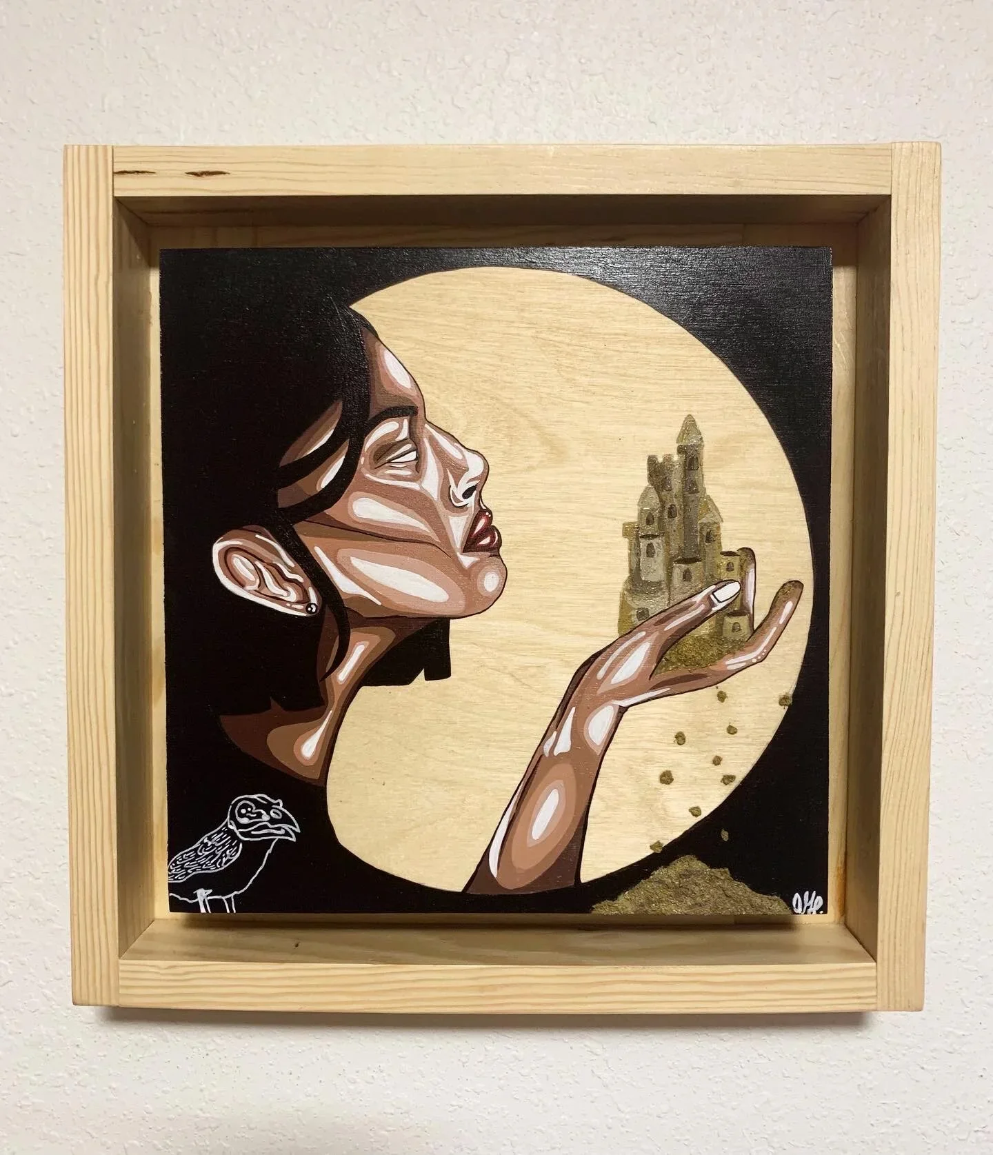 Each piece was painted on Birch Wood Canvas and set in a hand built Birch Wood Frame. Completed in Acrylic with an Acrylic additive to create 3D texture on the sandcastles.